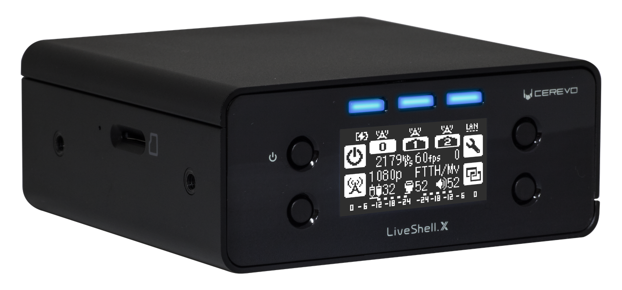 Cerevo LiveShell X HDMI monikanava streameri: Cerevo LiveShell X on langallisessa, langattomassa ja Wifi tai 3G/4G matkapuhelinverkossa toimiva pienikokoinen multicast videolähetin streameri jolla voi tuottaa suoran lähetyksen internetin välityksellä mistä tahansa maailmasta suoraan netti striiminä, HDMI liitäntä jopa 1920×1080 Full HD tasolla ja digitaalisella audiolla, tukee H.265/H.264 Live Encoding 1080/60p, realiaaikakinen paikallinen tallennus ja Multicasting jopa 3 yhtäaikaista Streamia.