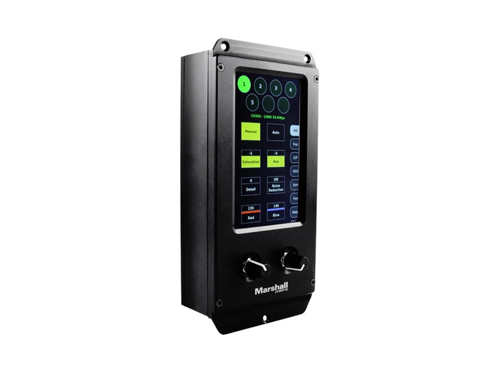 Marshall has teamed up with a five-time Sports Emmy award winner to develop a standalone remote RCP solution to adjust, paint, and match Marshall broadcast cameras. The new 5-inch Touchscreen RCP Camera Control unit allows for remote operation of up to seven broadcast cameras at up to 300m (1,000 foot) distance over common XLR cable, and it features a new intuitive touchscreen control with user-friendly, fine-tune adjustment dials for quick changes on the fly.