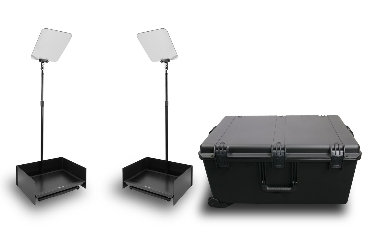 Prompter People Stagepro presidential teleprompter pairHighbright 24" 1000 NIT pro monitors in 1690 hardcase